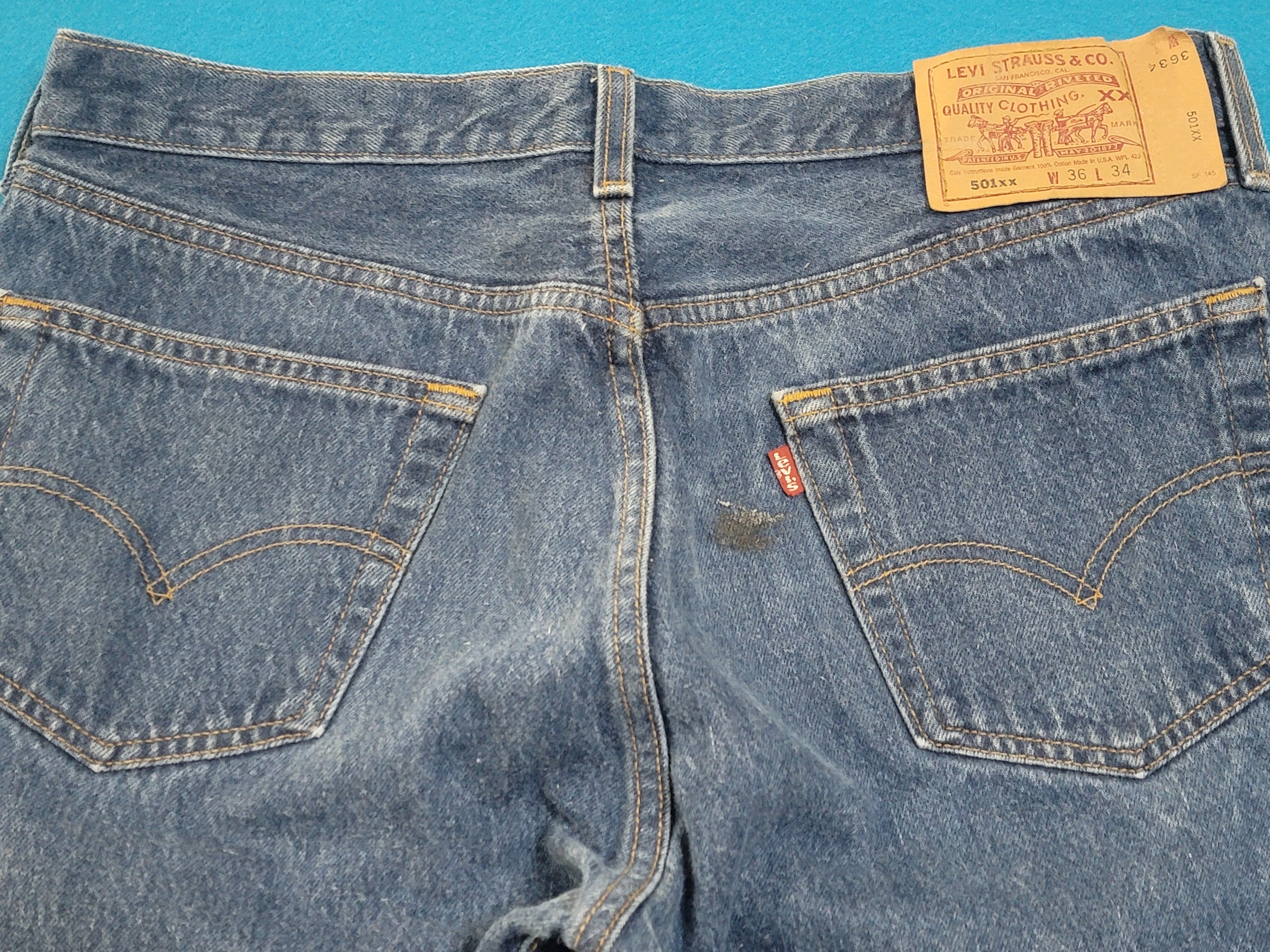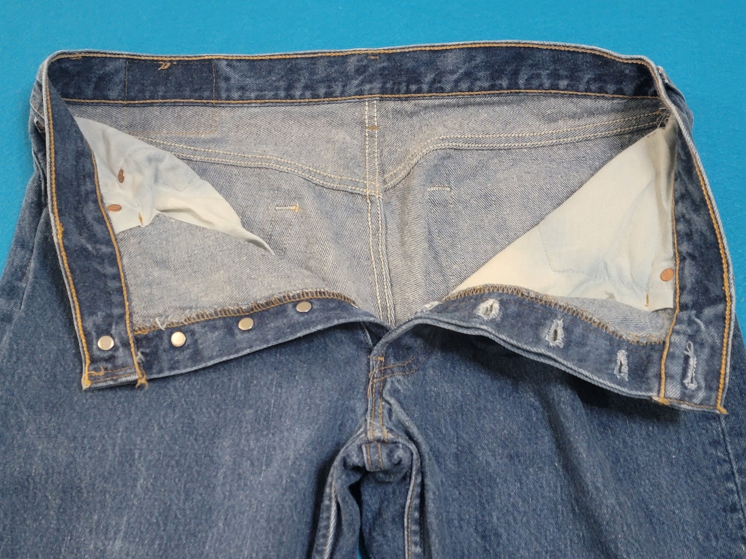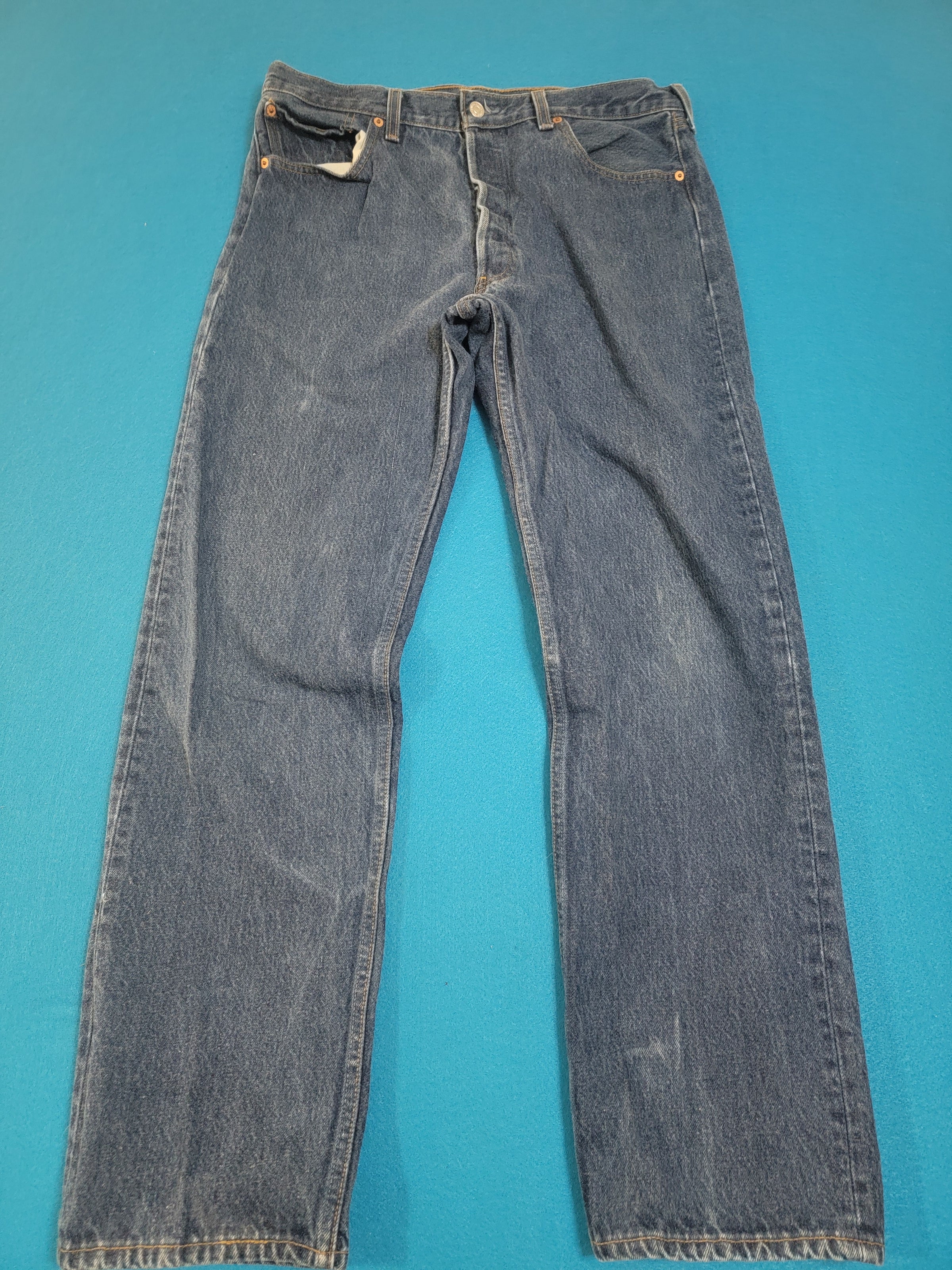 Levis 501 Button Fly Vintage 90's USA MADE May 1996 Denim Grunge Punk Red Tab Blue Jeans