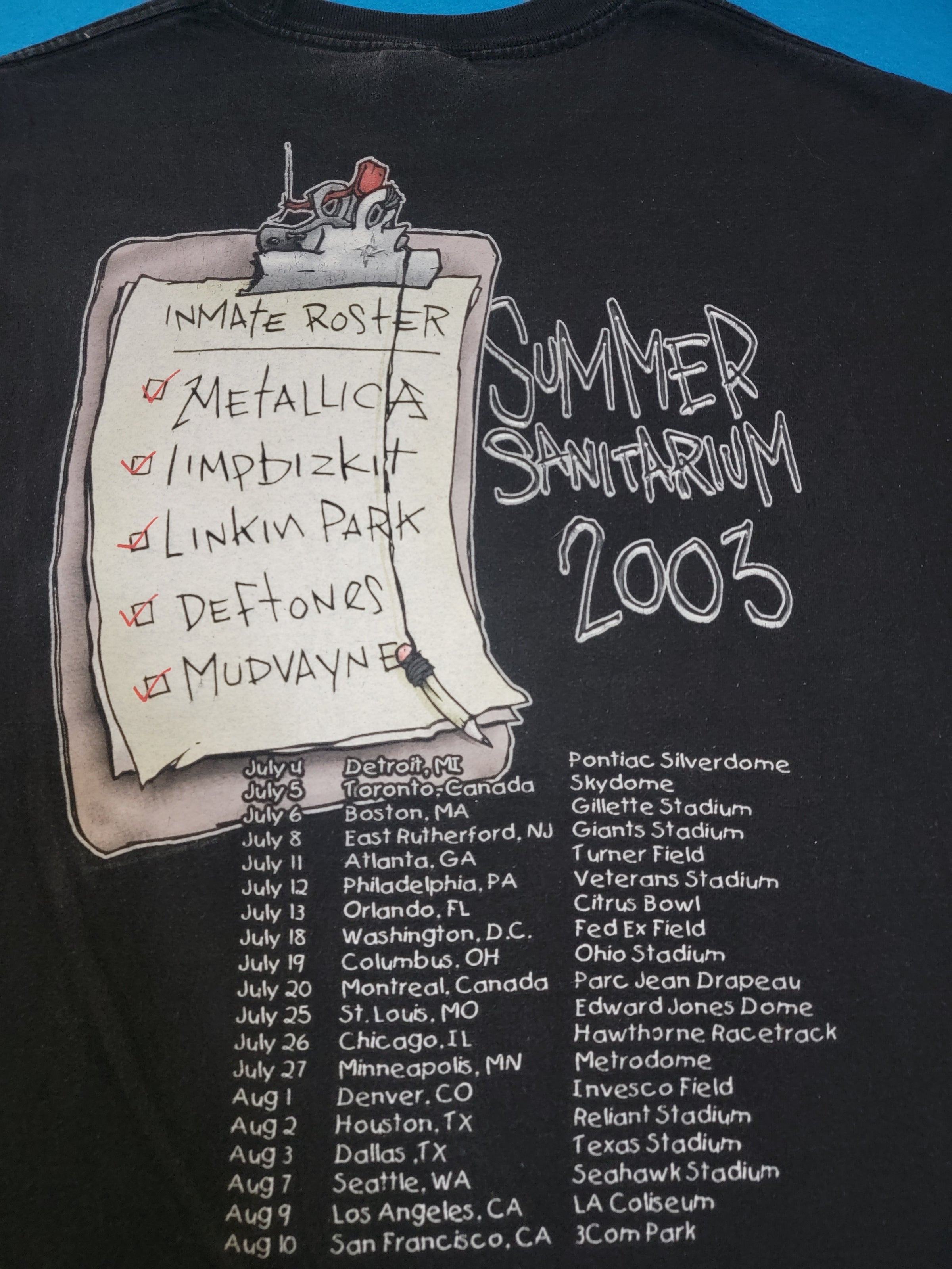 Metallica Limp Bizkit Deftones Linkin Park Mudvayne Inmates Summer Sanitarium 2003 Tour T-Shirt
